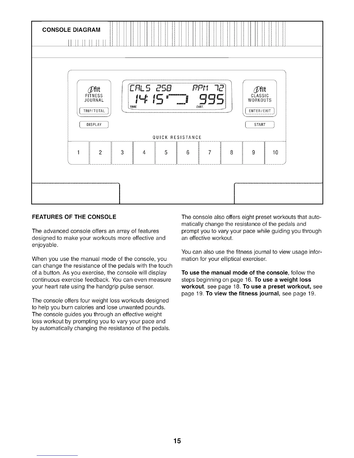 of a button. As you exercise, the console will display