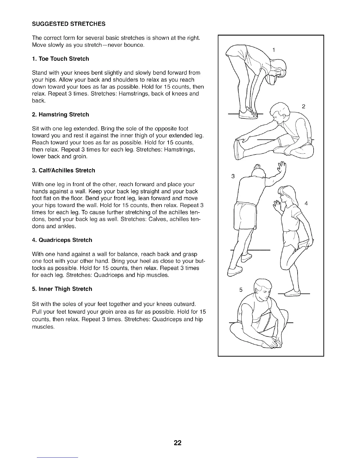 The correct form for several basic stretches is shown at the right.