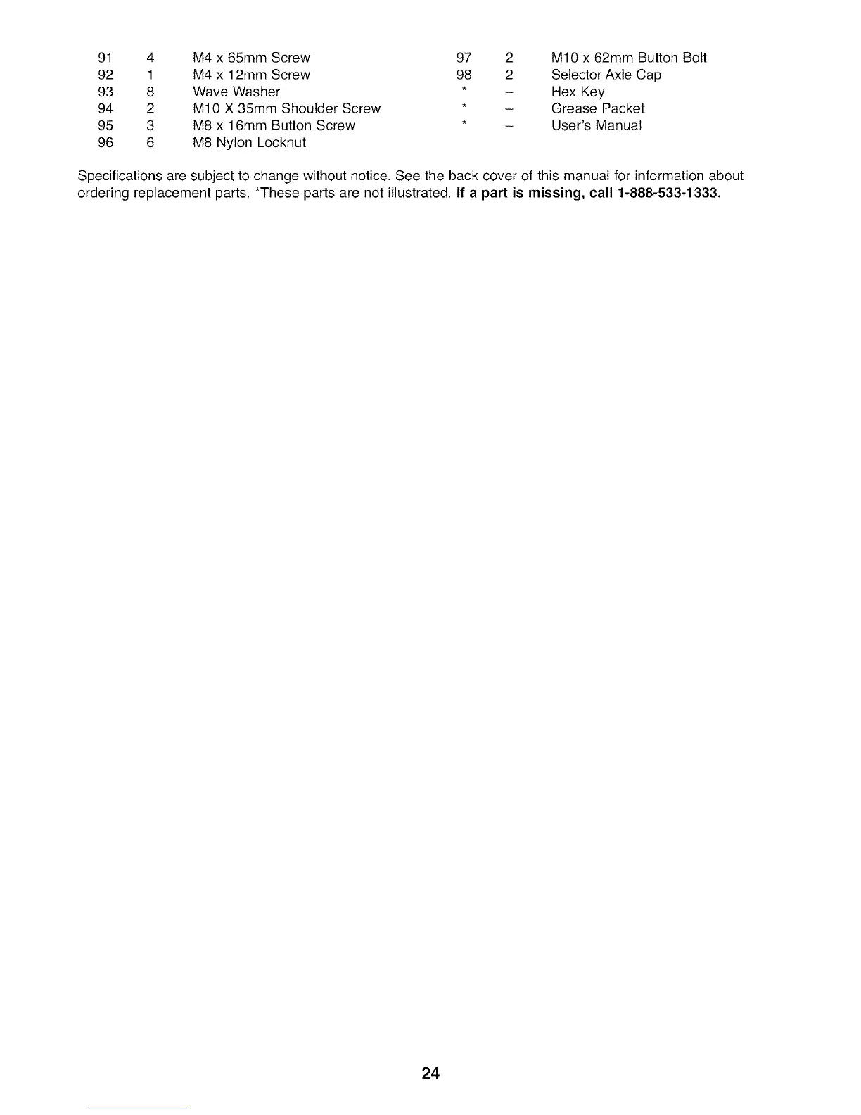 95 3 M8 x 16mm Button Screw * - User's Manual
