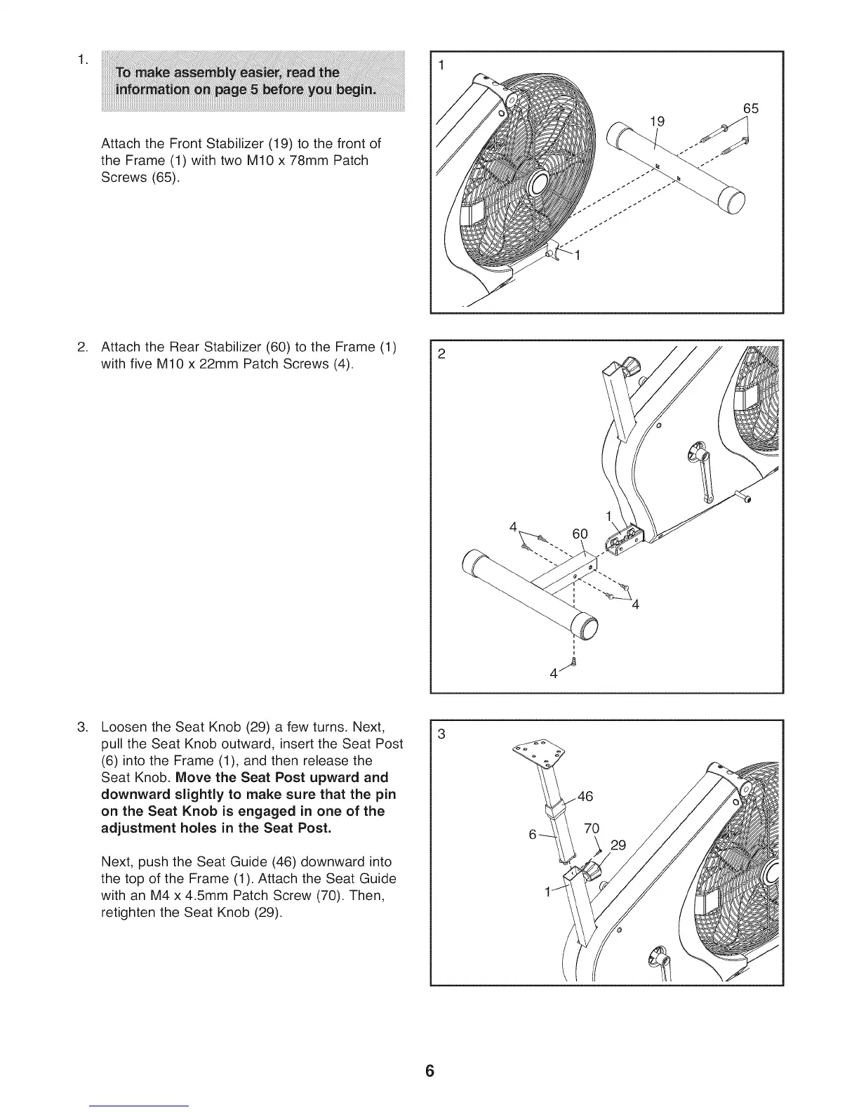 the top of the Frame (1). Attach the Seat Guide