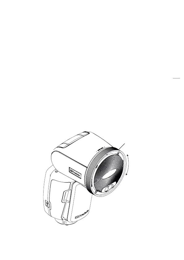 Rotate the Zoom ring [2] on the flash head clockwise or counter