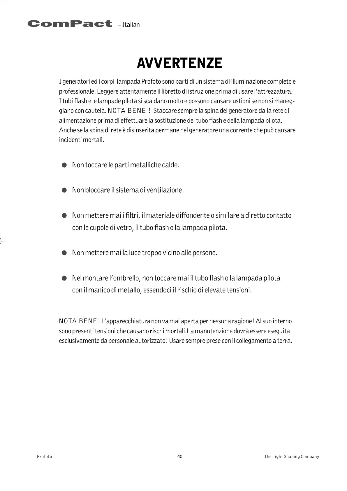 NOTA BENE! L’apparecchiaturanon va mai aperta per nessuna ragione!Al suo interno