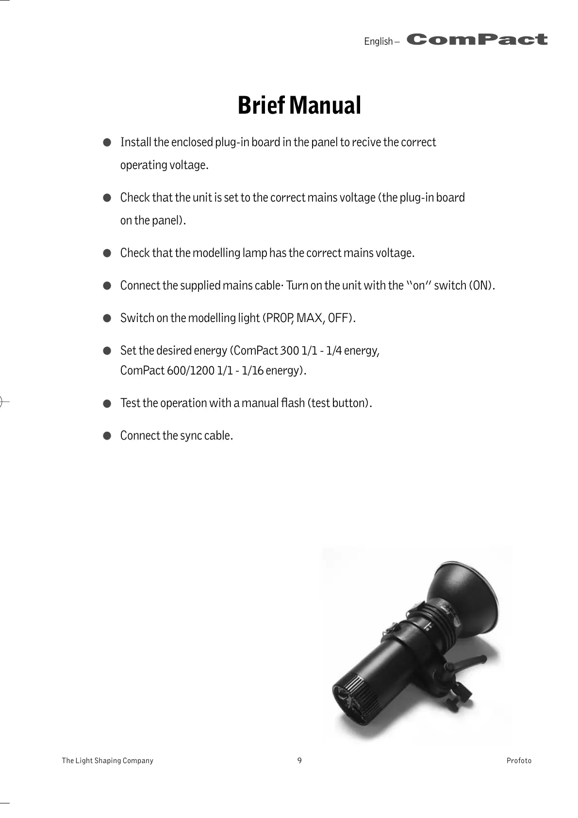 .Check that the modelling lamp has the correct mains voltage.