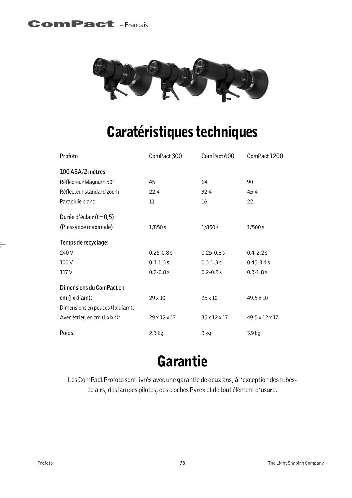 Les ComPact Profoto sont livrés avec une garantie de deux ans, à l’exception des tubes-
