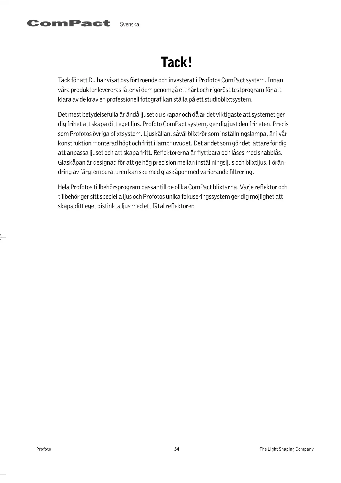Tack föratt Du har visat oss förtroende och investerati Profotos ComPact system. Innan