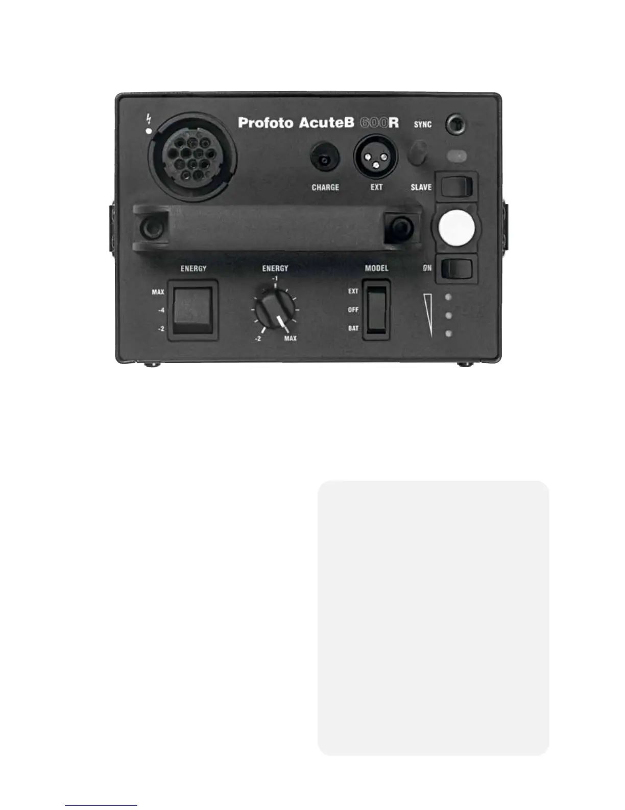 Charging time: 5 hours (standard Profoto Charger 1A),