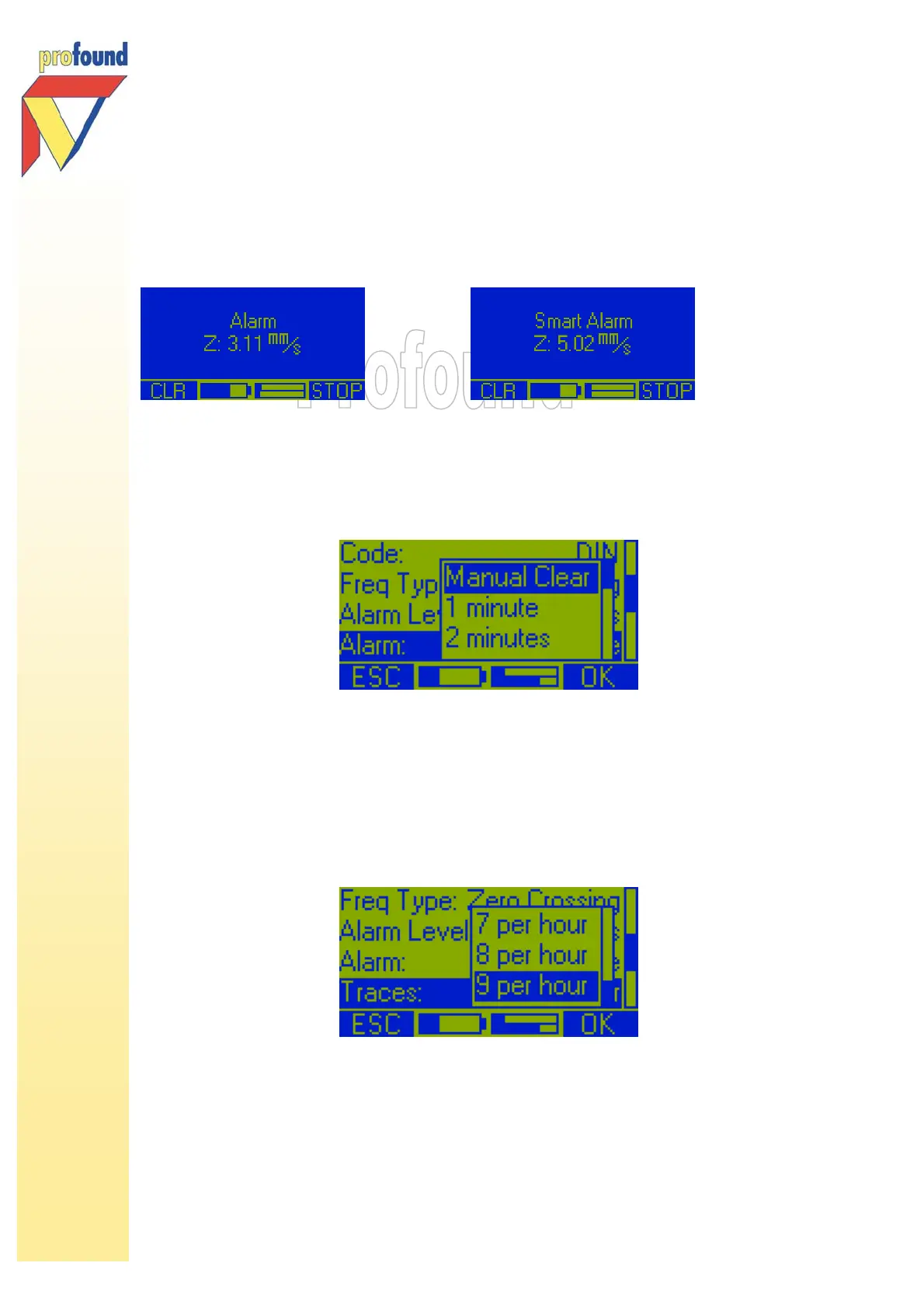When while measuring the alarm goes off, the system will show the alarm type set (hard set value or