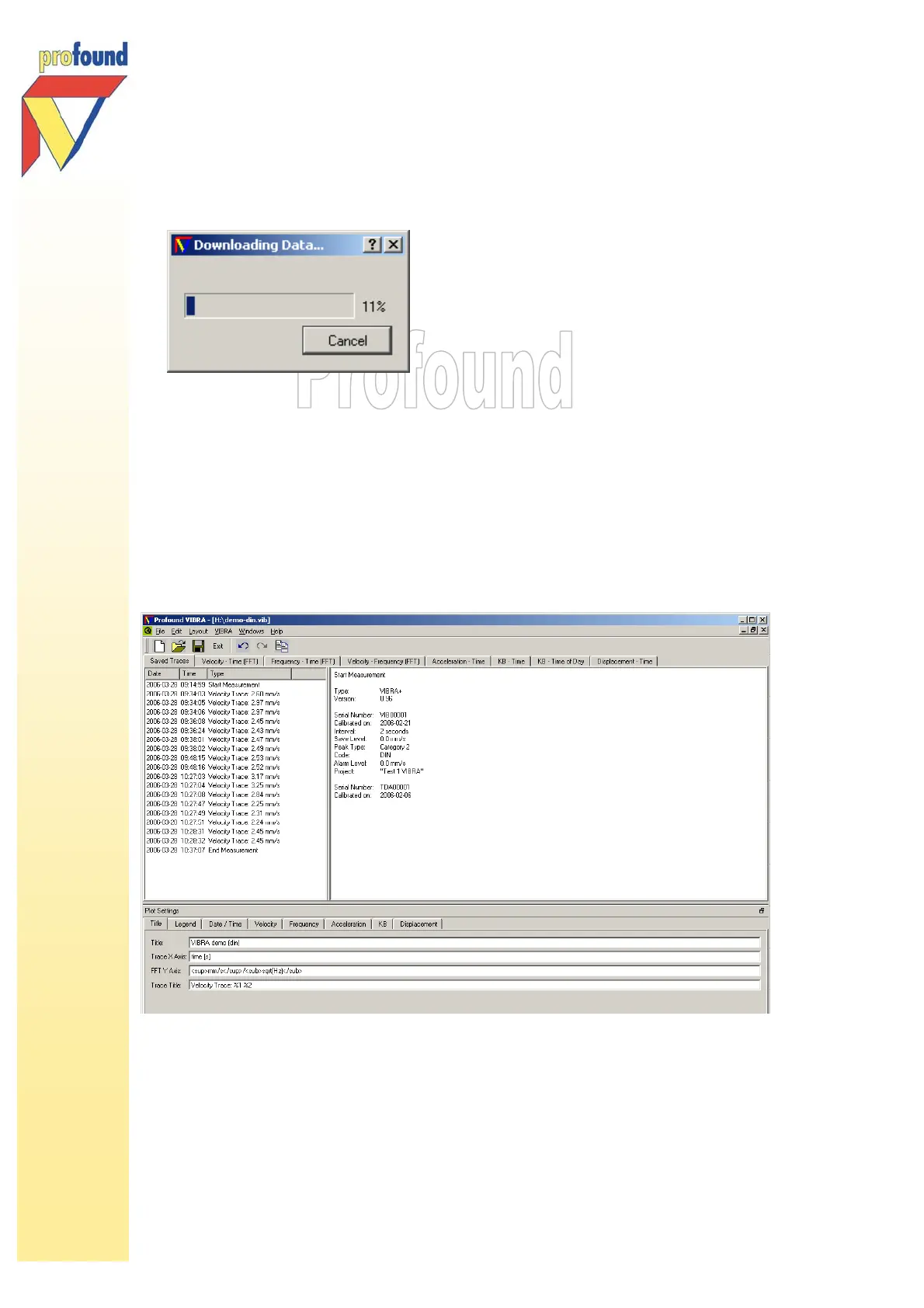 VIBRA model. The first tab Saved Traces gives an overview of the measurement including the