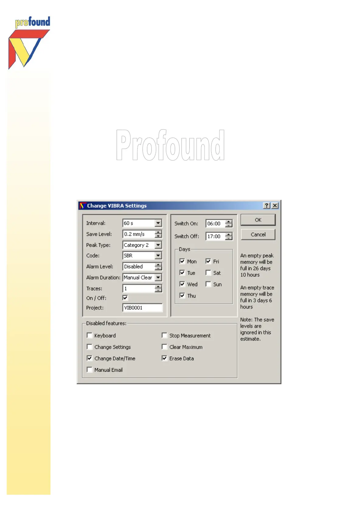 Changed settings and the PC date and time are sent to the VIBRA the moment you click OK.