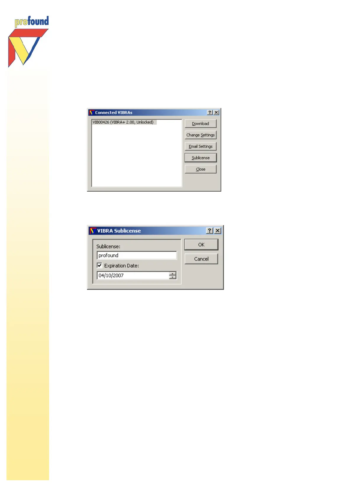 3. The following dialog will pop up or select Sublicense in the VIBRA menu. Of course, the