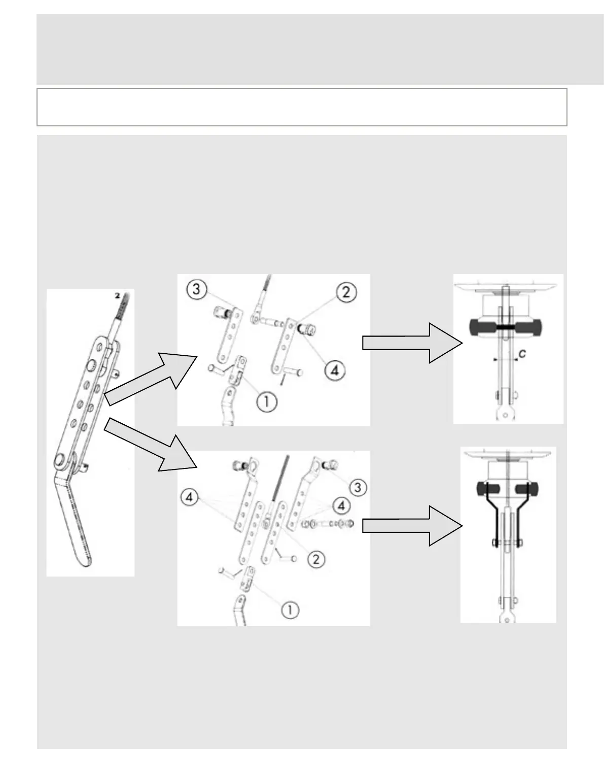 2- Si un cardan a été ajouté, choisir un nouveau trou de réglage pour compenser la longueur du cardan.