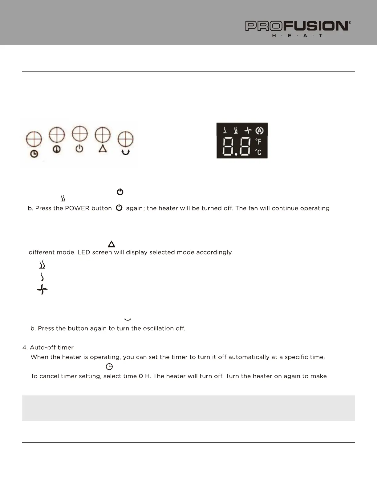 a. Press the POWER button ( ) once to turn on the heater at the HIGH output setting; LED screen