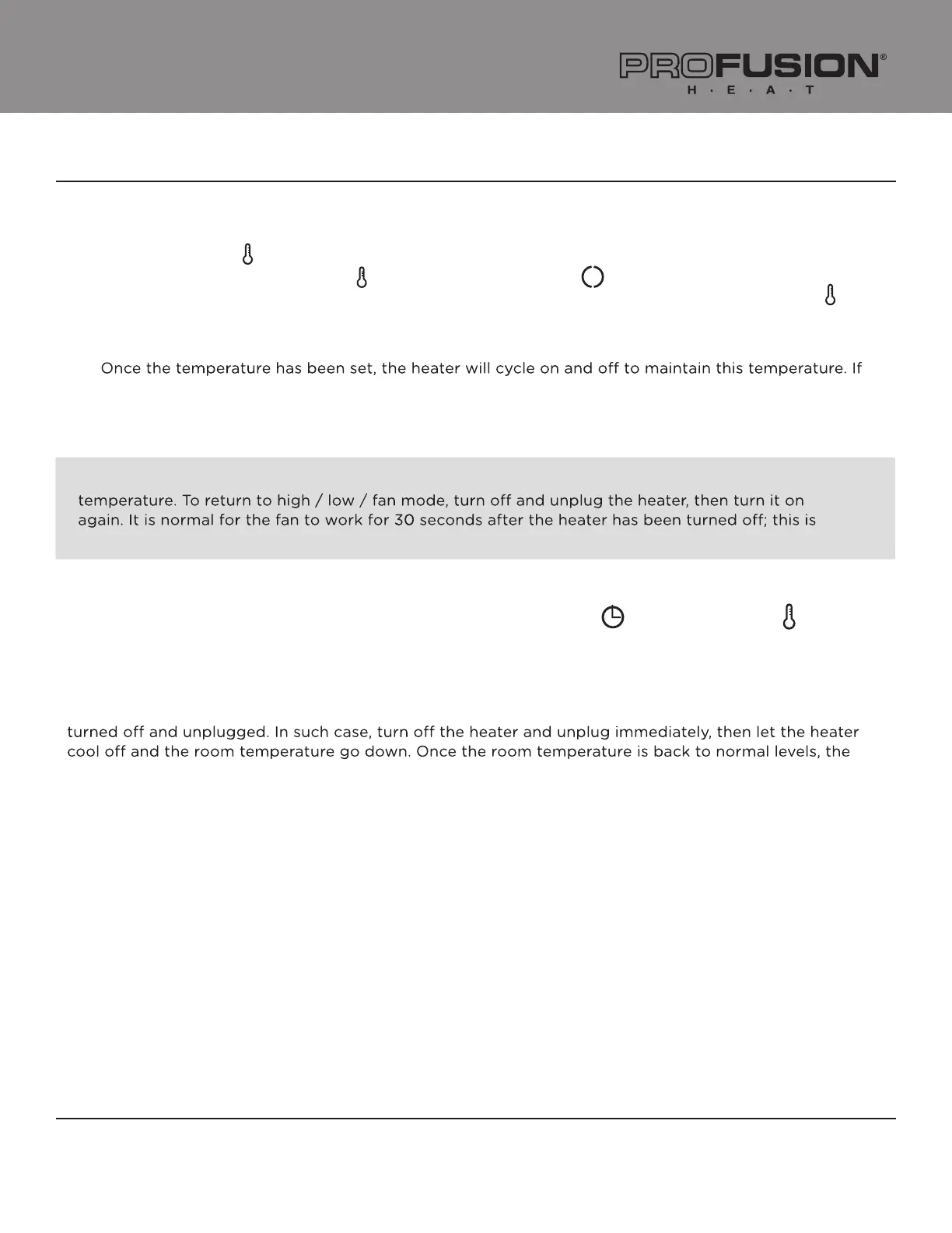 When the heater is working at the “low” or “high” setting, you can set the temperature by pressing