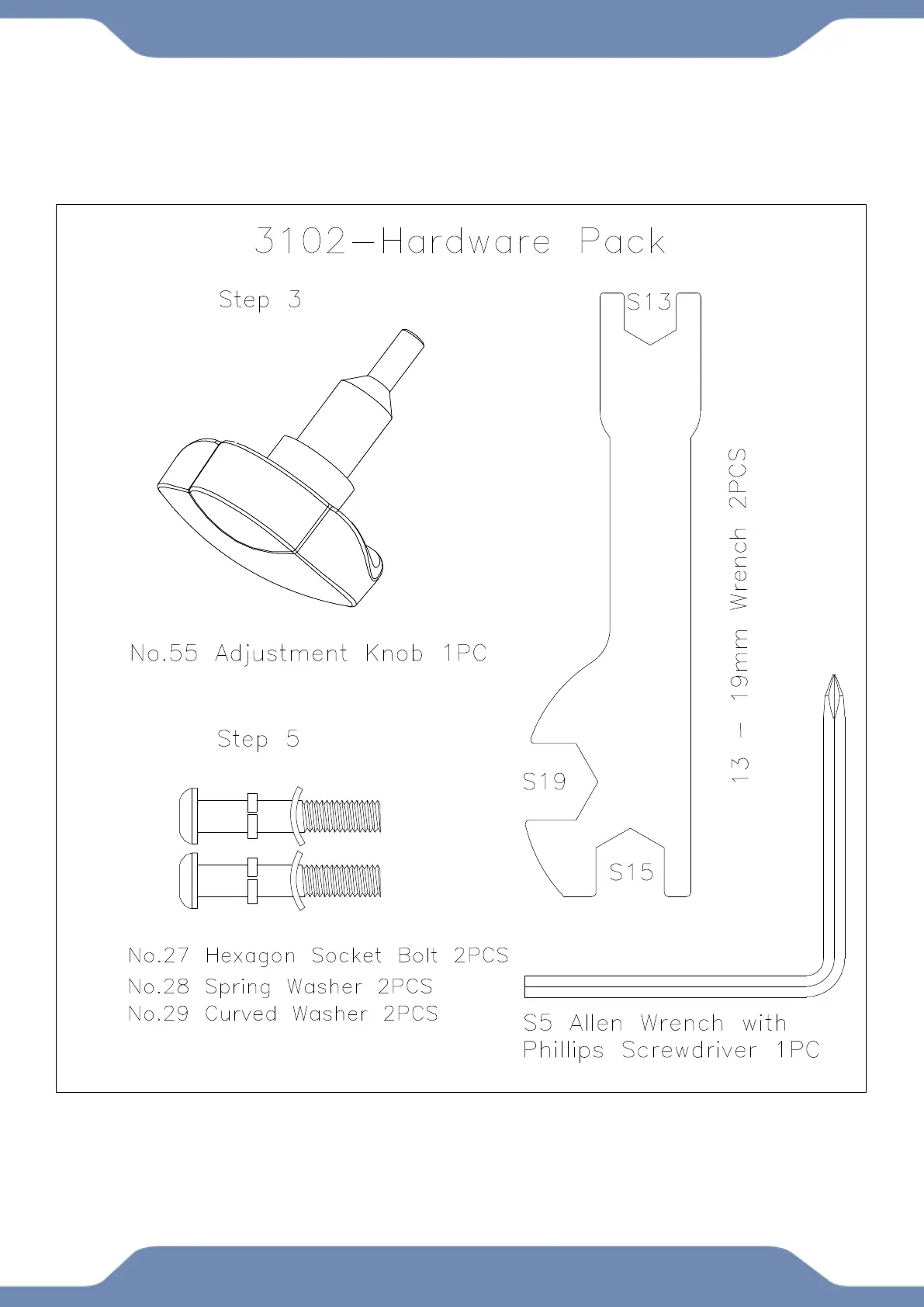 ProGear 225 - Hardware List & Tools; Included Hardware and Tools