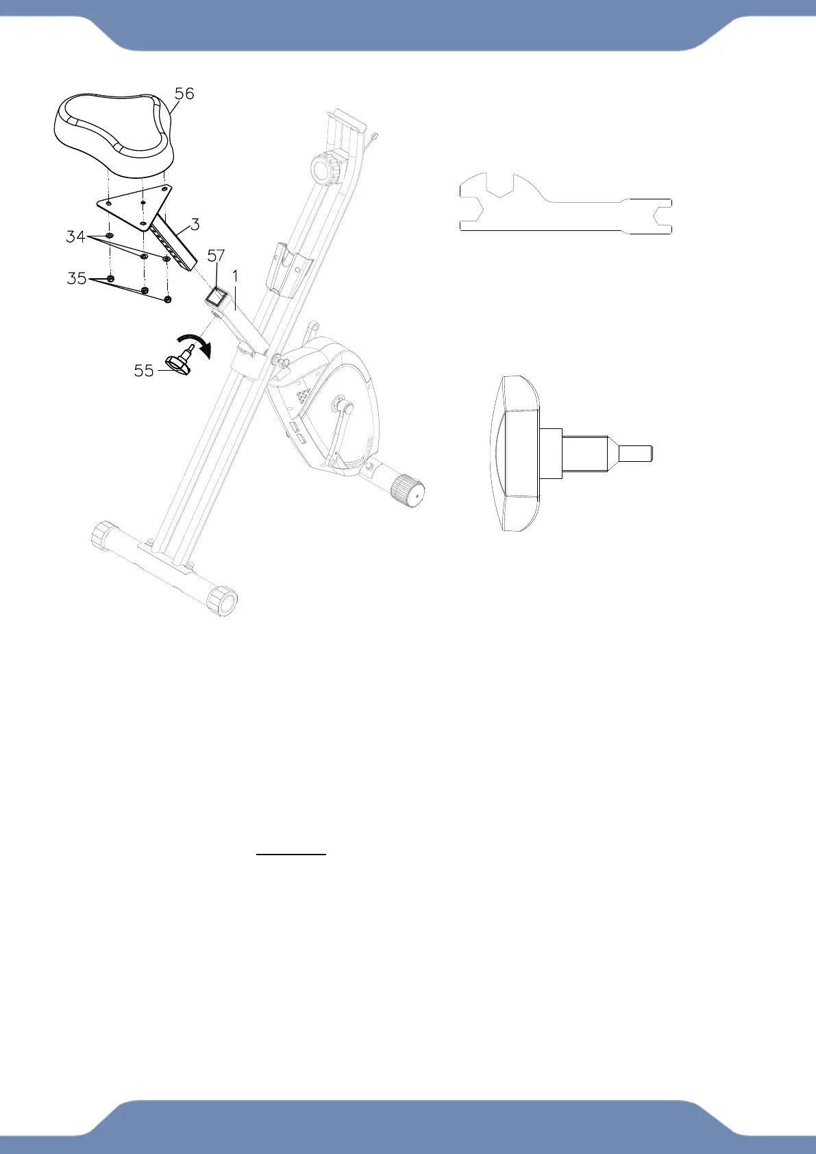 Seat Post (3). Attach the Seat Cushion (56) to the Seat Post (3) with three Flat Washers (34)