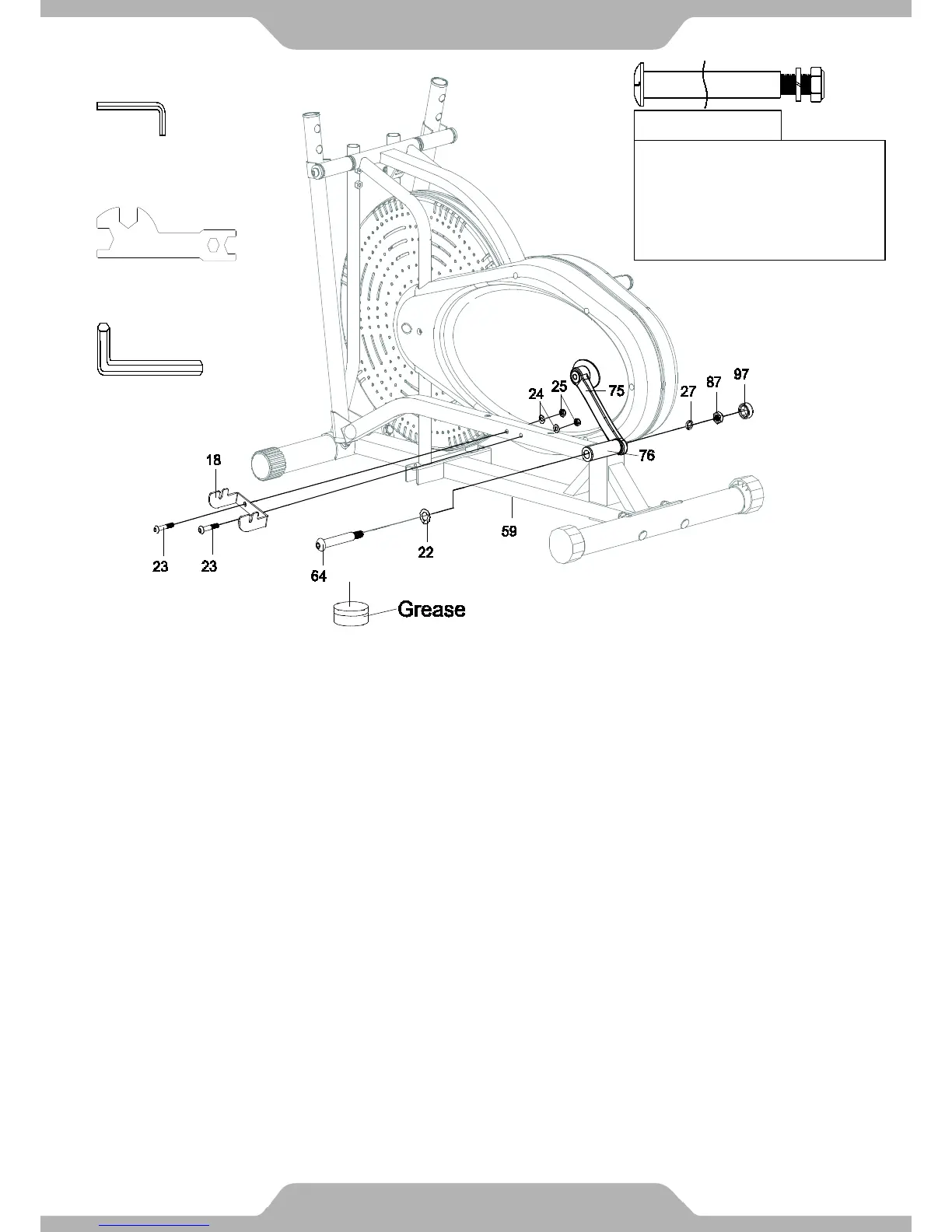 6mm Allen Wrench to tighten the Foot Pedal Support Bracket (18) to the Left Foot Bar (76).
