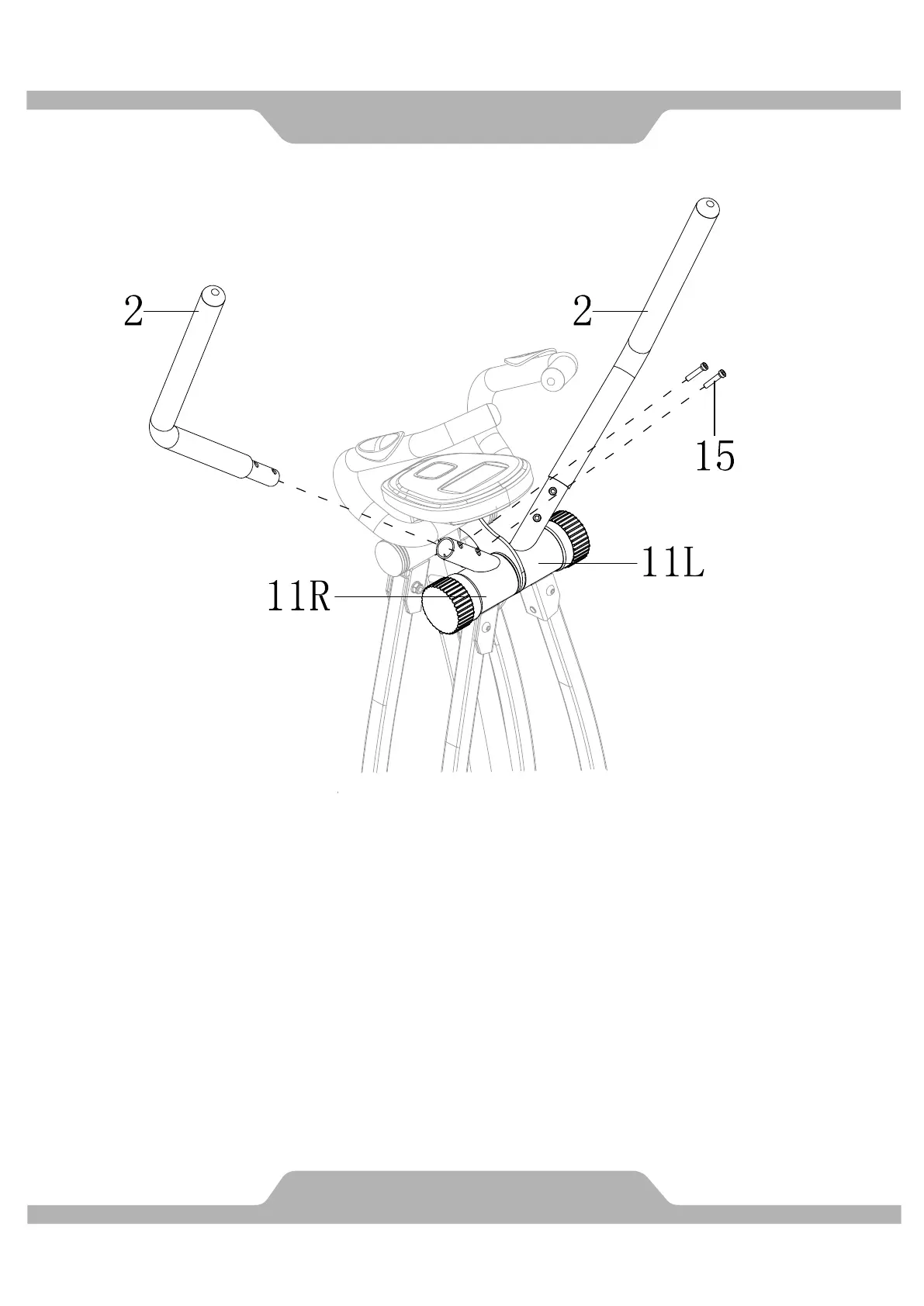 Unscrew Hex Socket Head Screws (15) from Handlebar Bracket (11R). Insert Handlebar