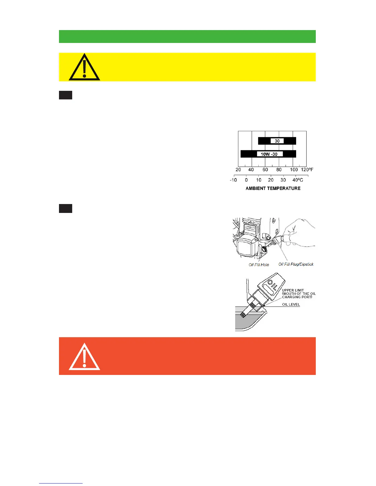 CAUTION: This unit is shipped without oil in the engine. Add oil (Section