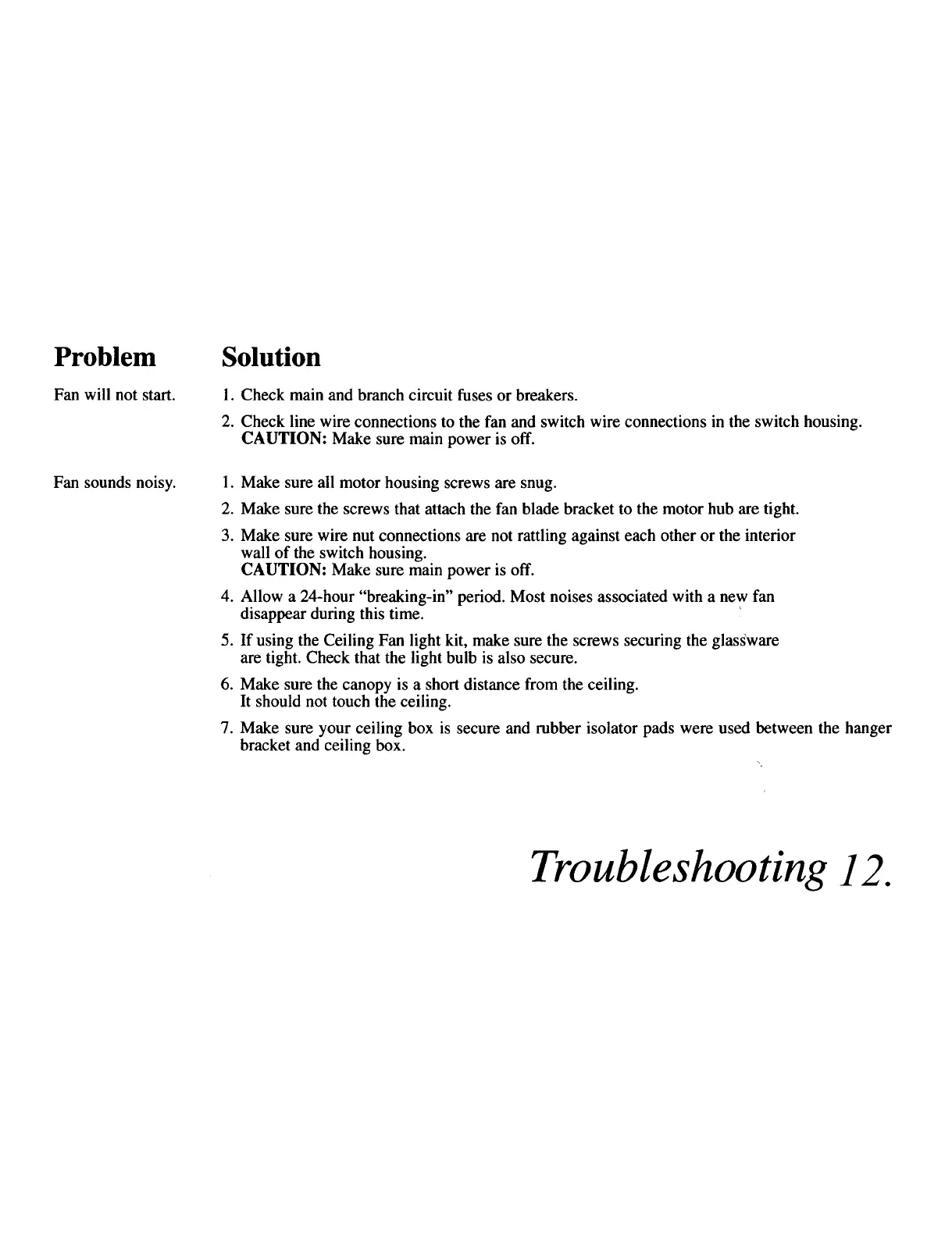 Progress Lighting EF200D - Troubleshooting; Common Fan Issues and Solutions