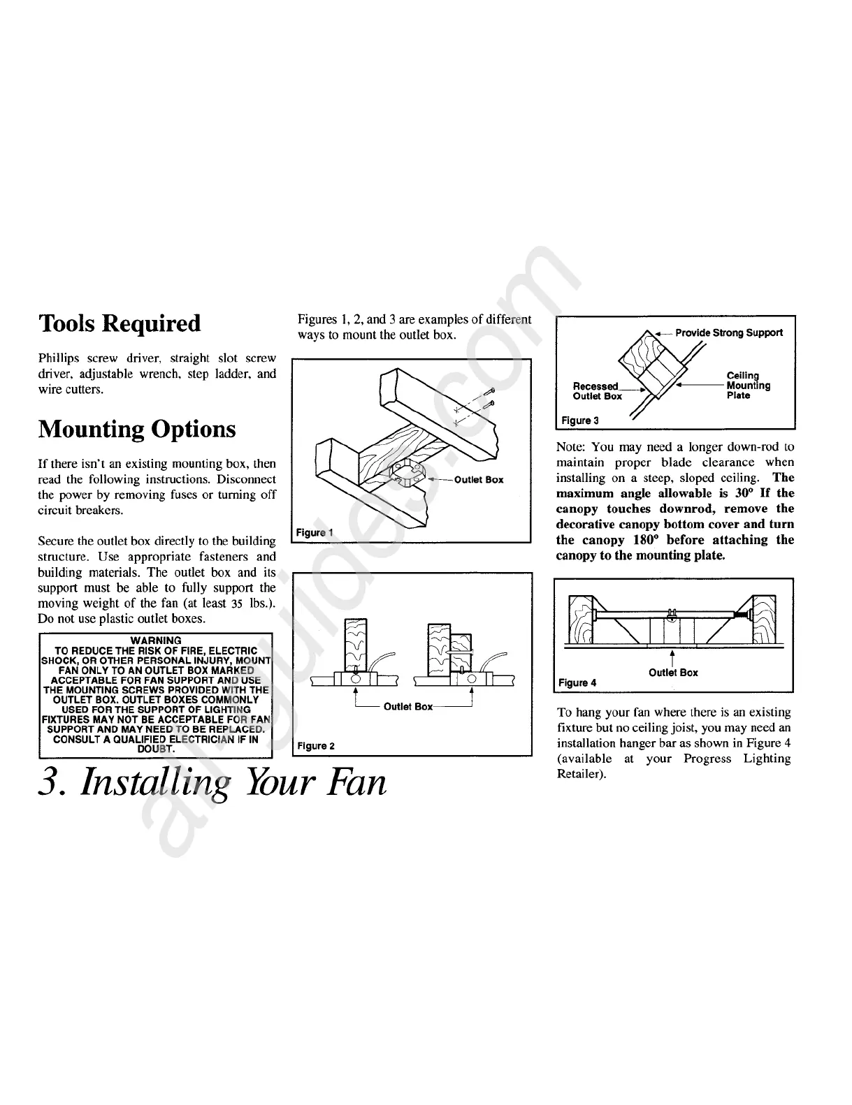 Progress Lighting EF200D - Installing Your Fan; Tools and Mounting Options