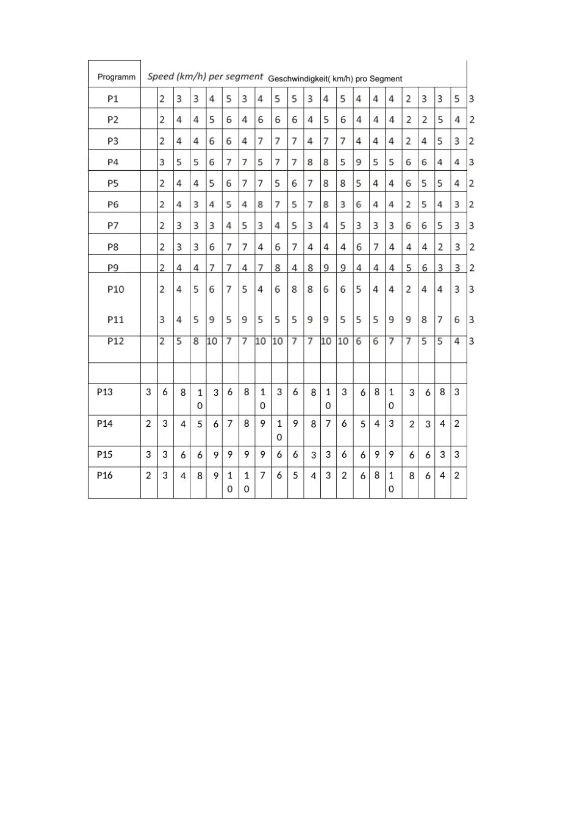 Press the PROG button to select the pre-set training program (P01-P16) mode before training.