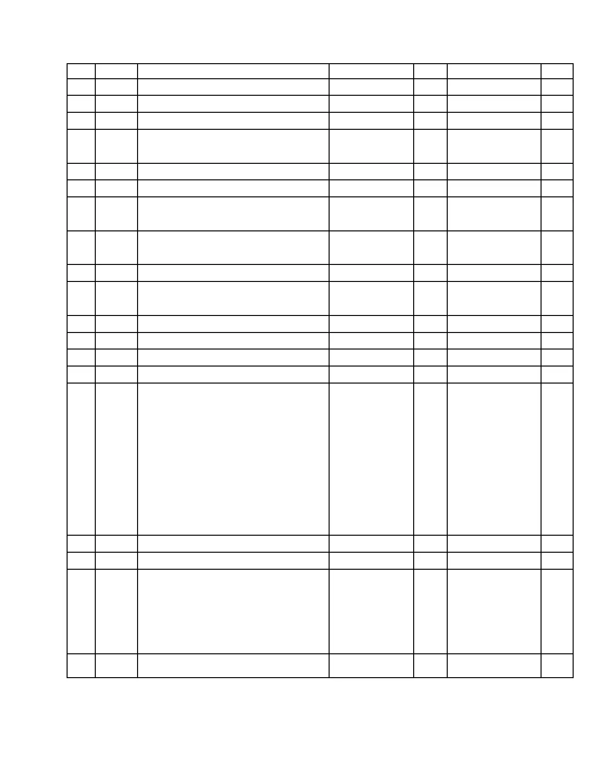 PART # DESCRIPTION 15.5' Serial No. QTY. 12' Serial No. QTY.