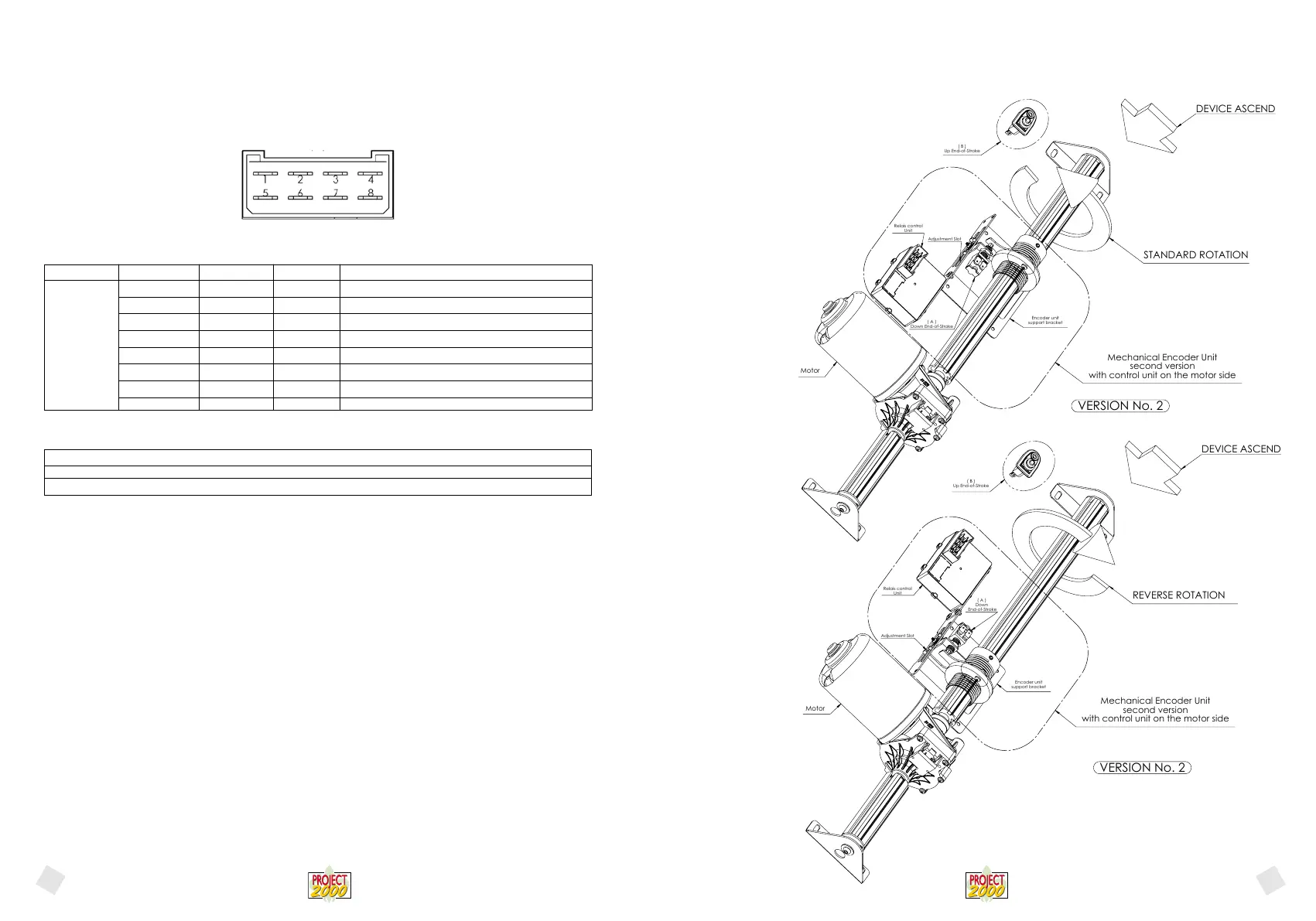 Connect the YELLOW wires to the “Down” end of stroke of the mechanical encoder and connect the ORANGE wires to the “Up”
