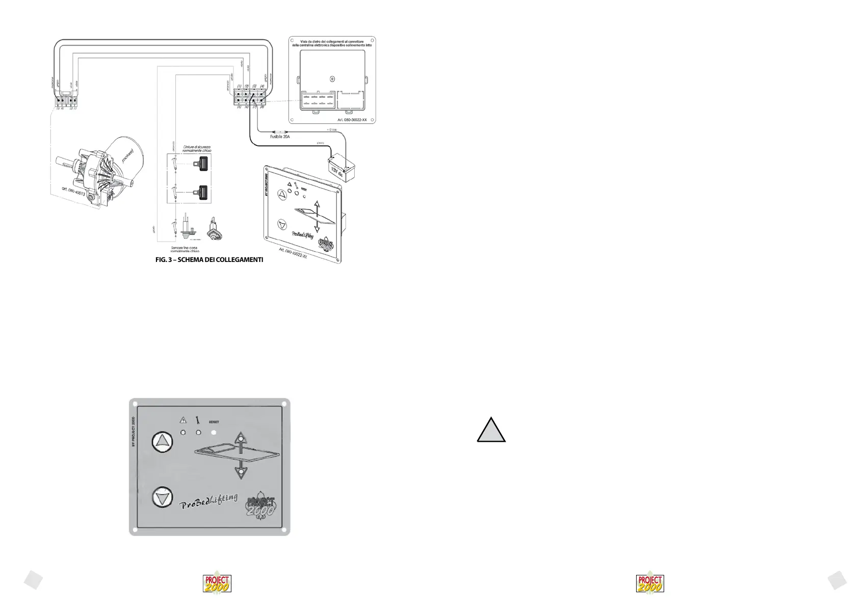 Il costruttore fornisce insieme al dispositivo sollevamento letto una serie di cablaggi a misura standard atti per l’installazione. Al termine