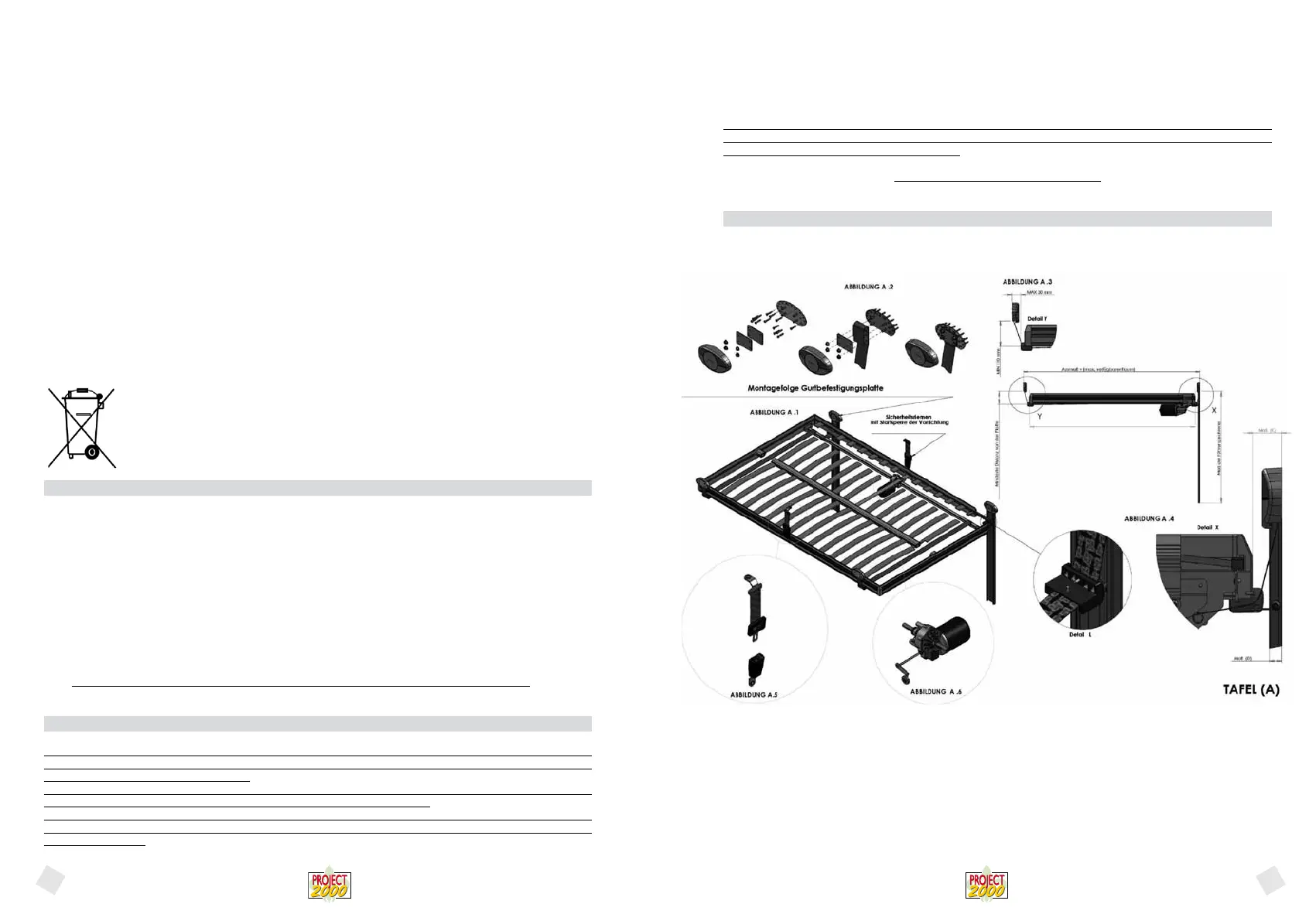 Der Hersteller „Project 2000“ leistet für die verschiedene Komponente der Bett-Hubvorrichtung eine Garantie für 24 Monate ab dem