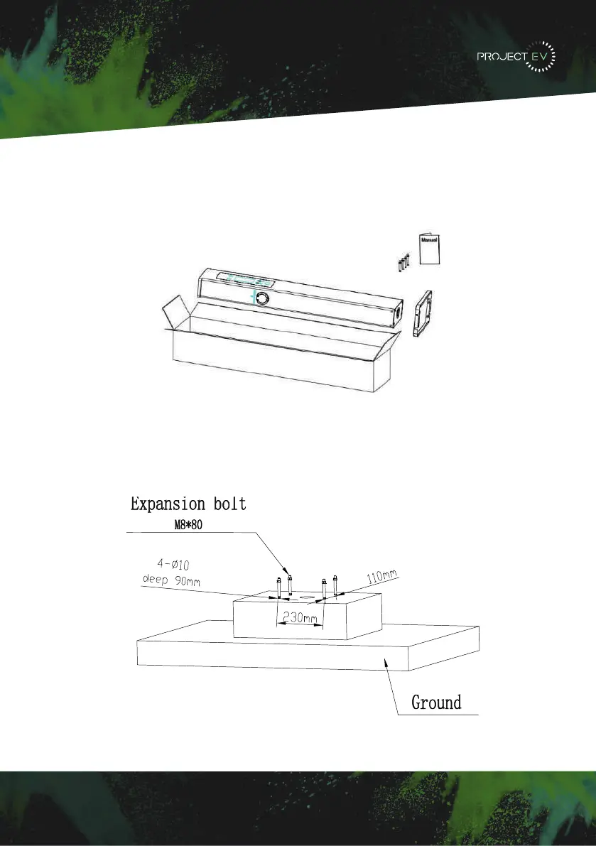 1. Open the packaging, you’ll see a charge point, a mounting bracket, a user manual and a