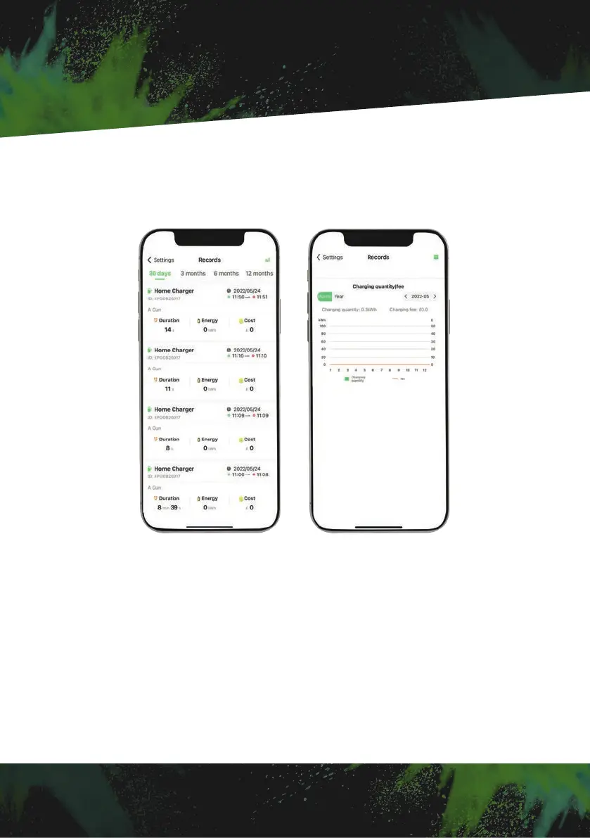 charger ID, Gun A or B, Time, Energy, Cost and many other great details to help you keep