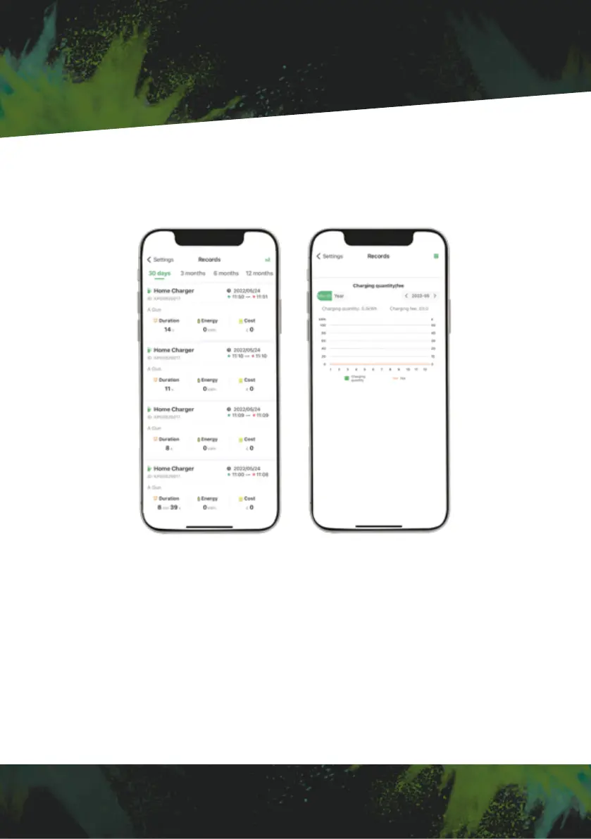Press 'Records' found in charger settings to view past charge records, this will include