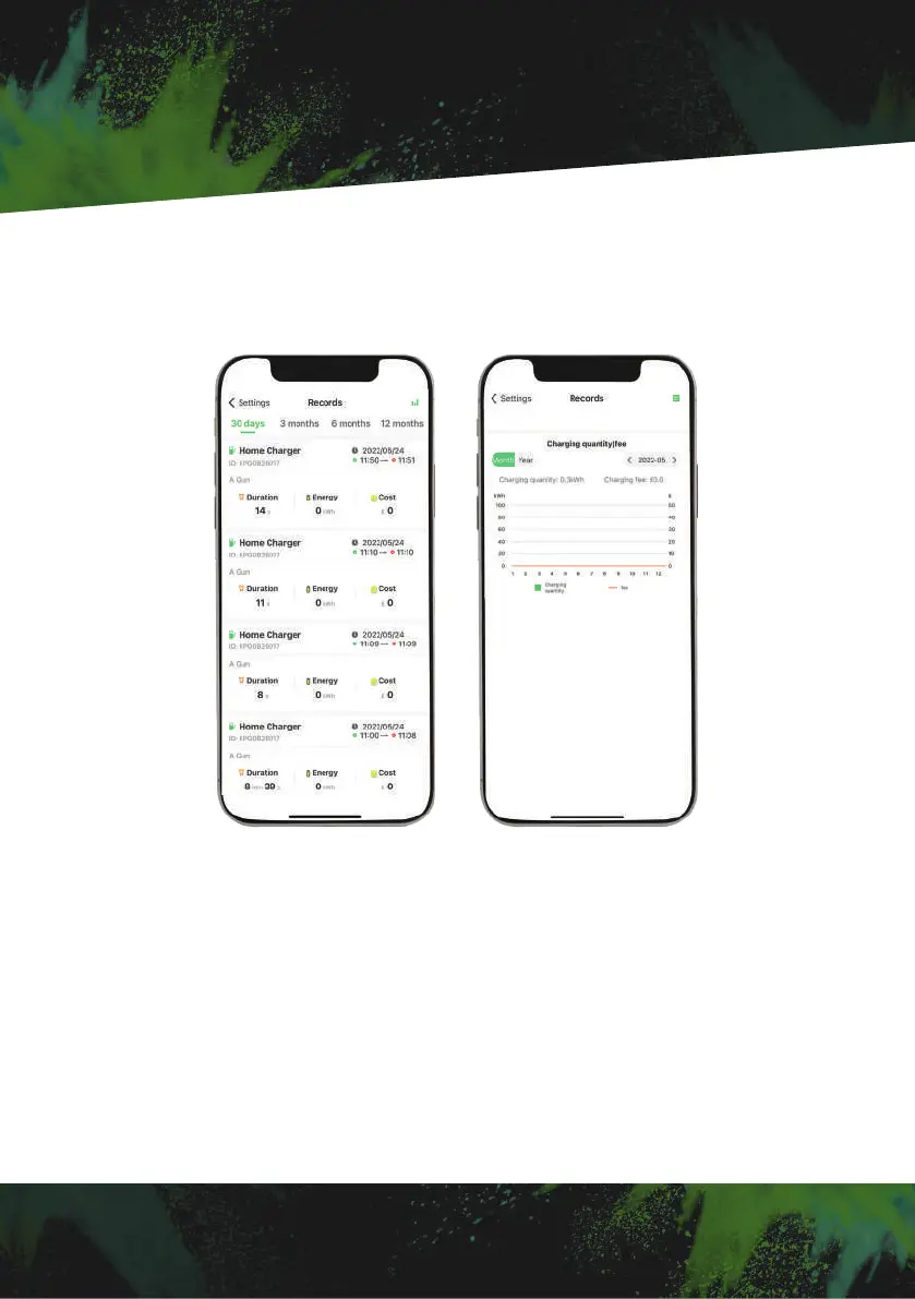 Press 'Records' found in charger settings to view past charge records, this will include