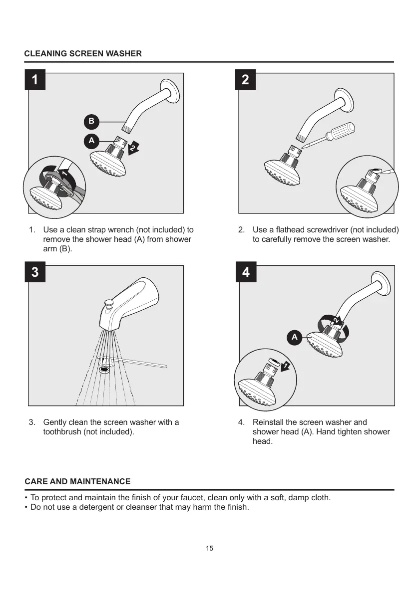 shower head (A). Hand tighten shower