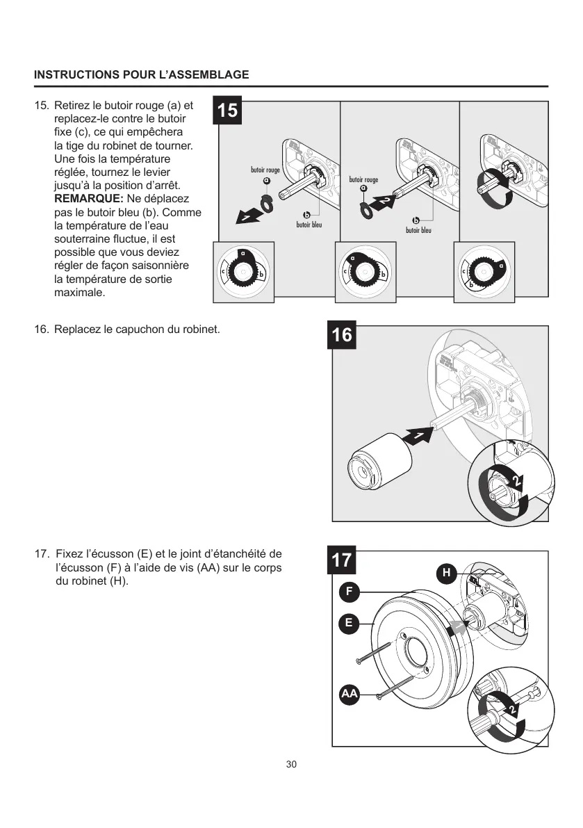 17. Fixez l’écusson (E) et le joint d’étanchéité de