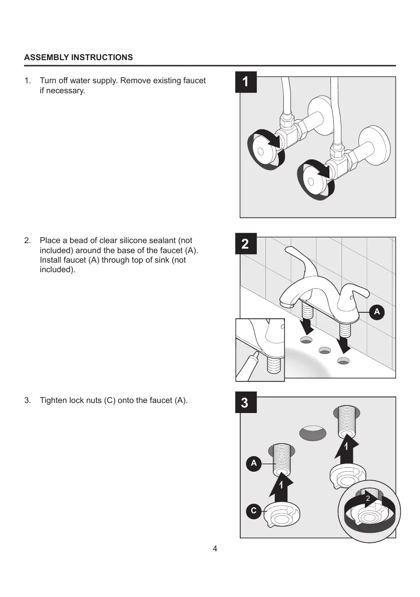 1. Turn off water supply. Remove existing faucet