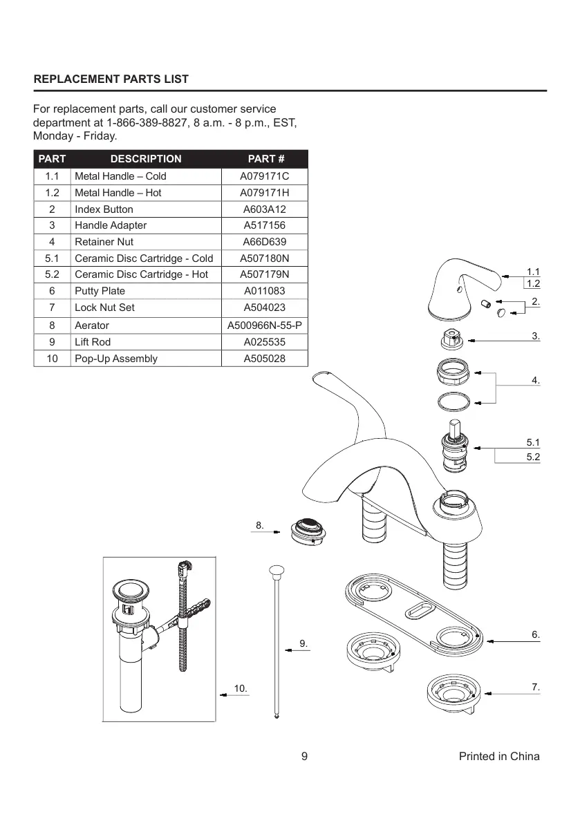For replacement parts, call our customer service