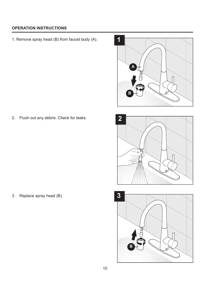 Project Source FP4AF261CP - Operation Instructions; Remove Spray Head; Flush and Check for Leaks; Replace Spray Head