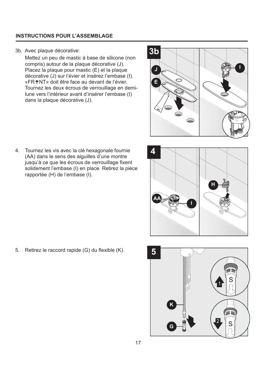 décorative (J) sur l’évier et insérez l’embase (I).
