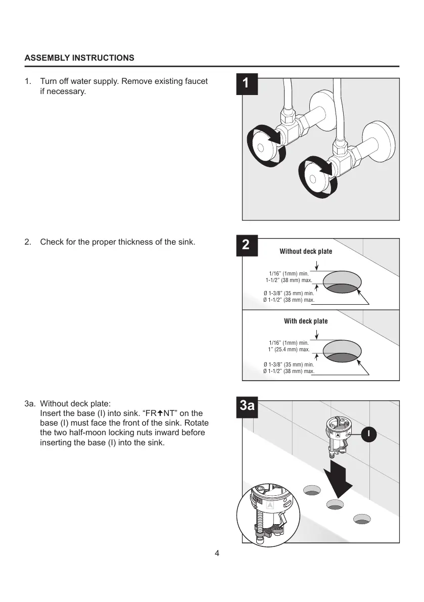 base (I) must face the front of the sink. Rotate