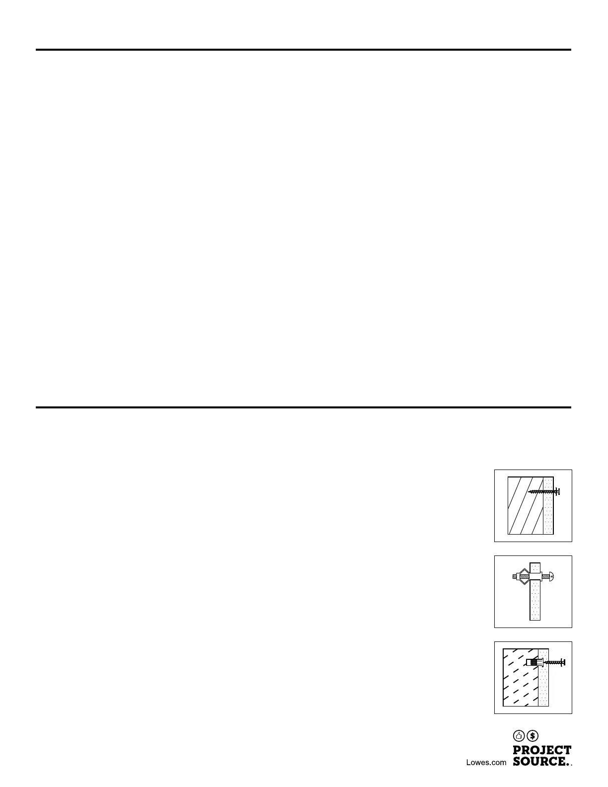 STUD WALL: Secure to wall with #12 x 3 in. screws with a washer at stud locations.