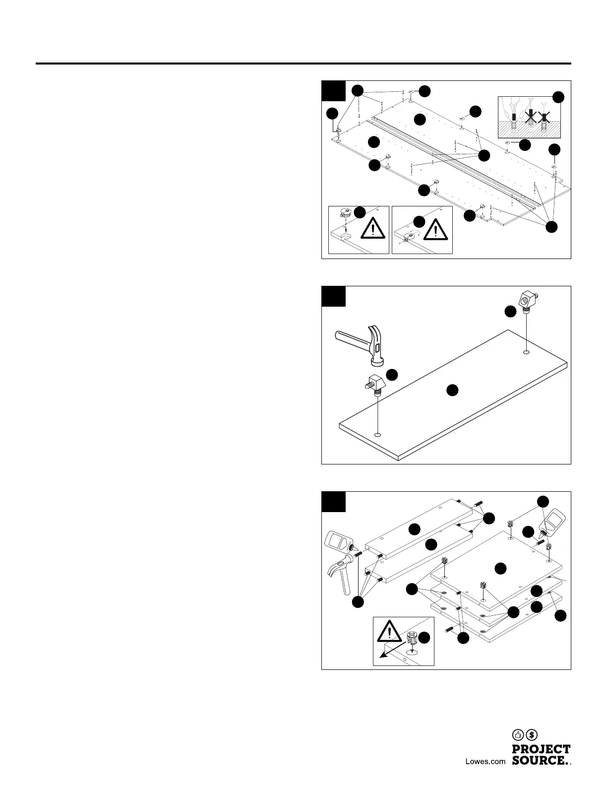 Enfoncez les cames en plastique (II) et les boulons à came