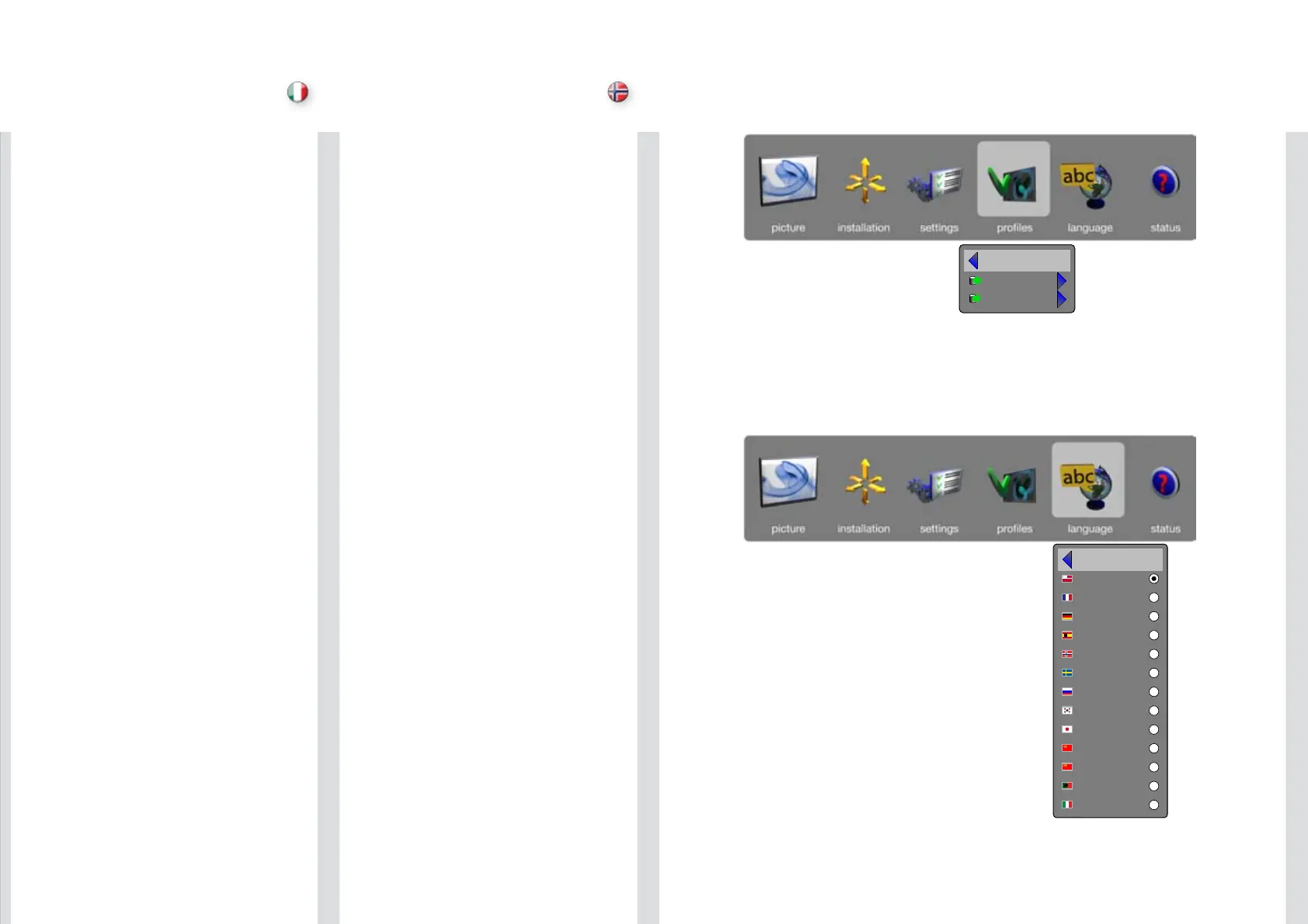 Seleziona la lingua dei menu.