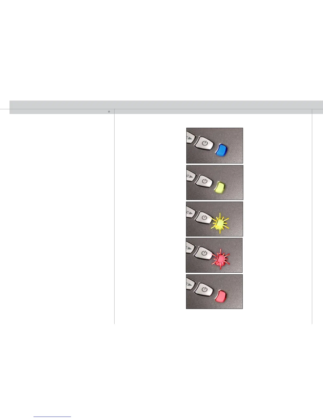 The light next to the power key indicates the overall system status by blue, orange and