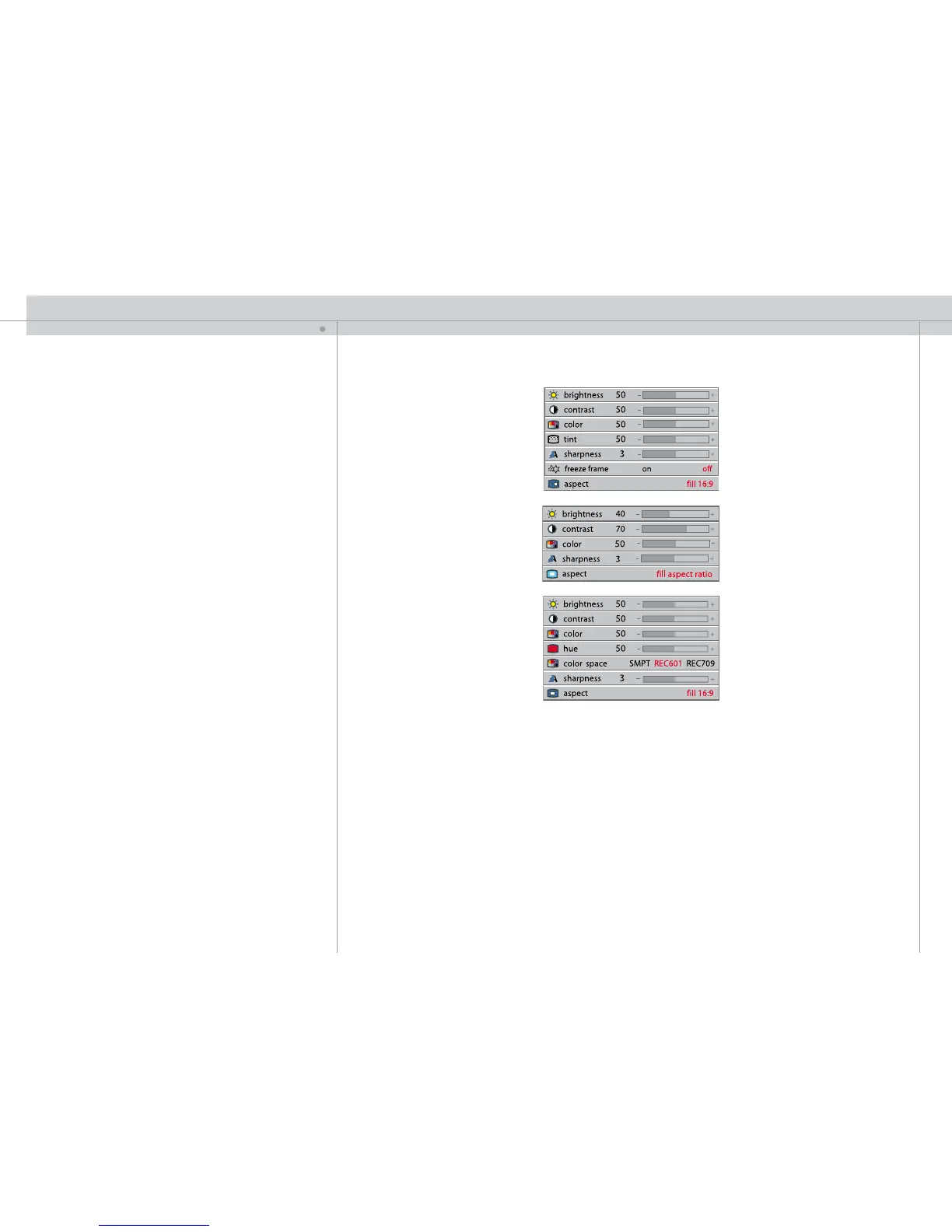 Adjusts the NTSC color tint. Applicable to NTSC (American) video standard only. A