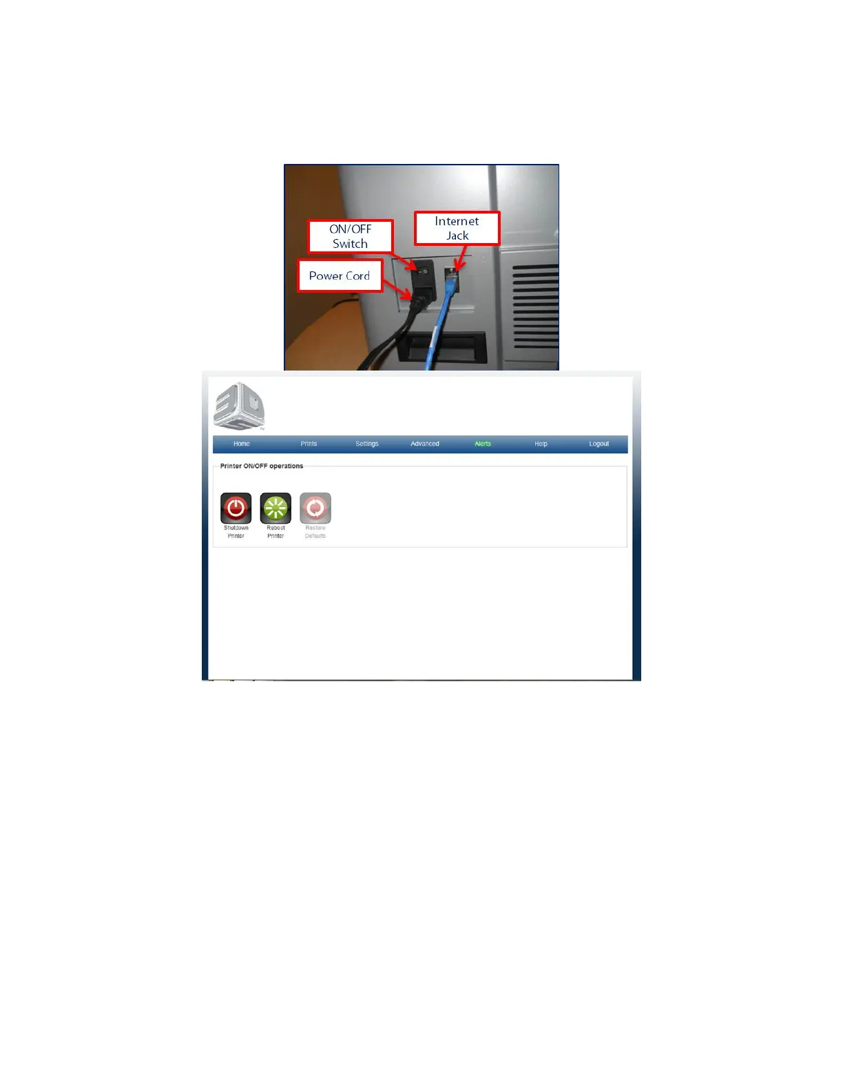 on/off, then shutdown printer. After a few minutes the speed up indicating that the system is shutting down. Once this has occurred, you may turn