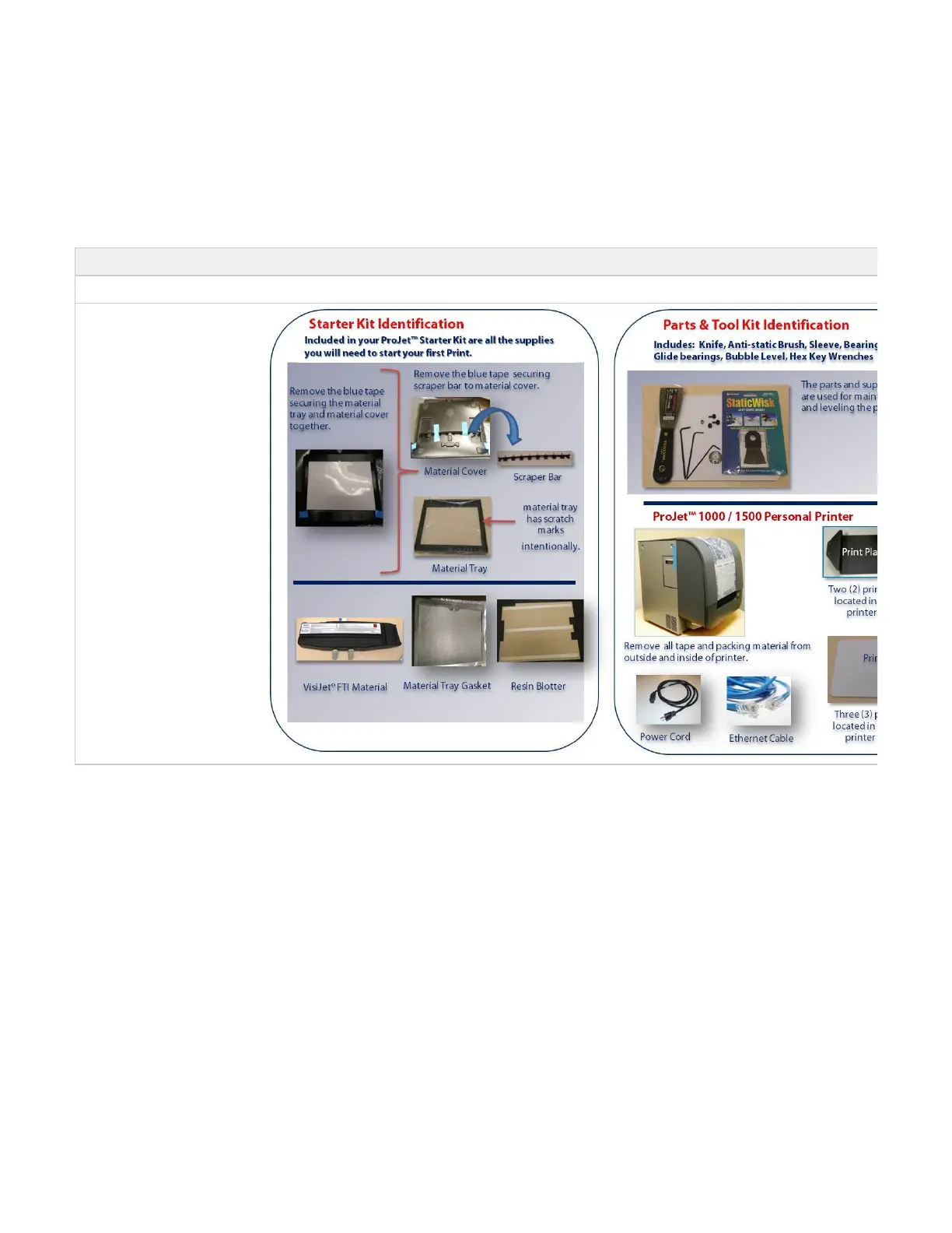 Ensure that all parts and supplies are included in the kits and in the printer packaging. If you find that your packages are incomplete, please