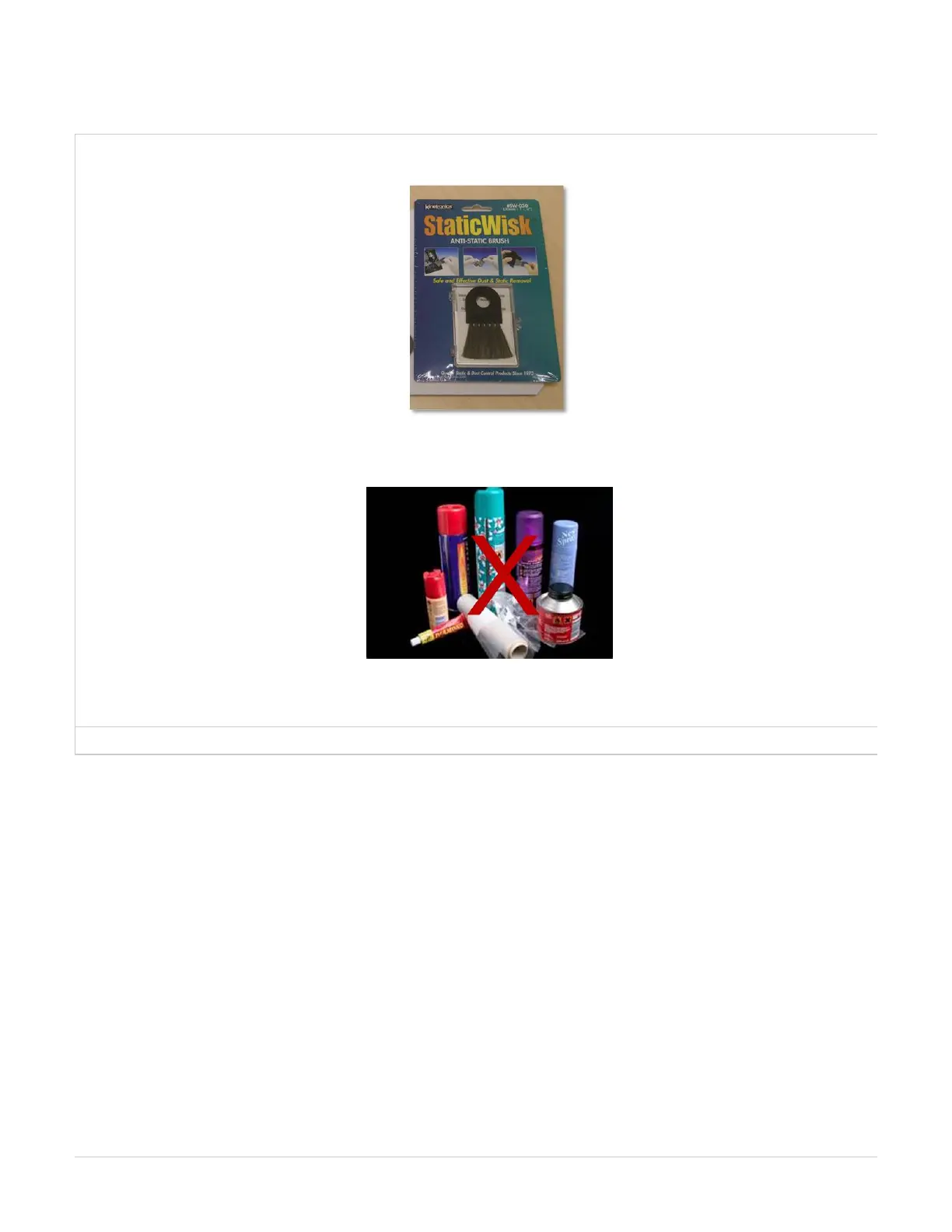 Never use solvents or cleaning materials other than the anti-static brush. Doing so could cause scratches on the mirrors that affects the quality of