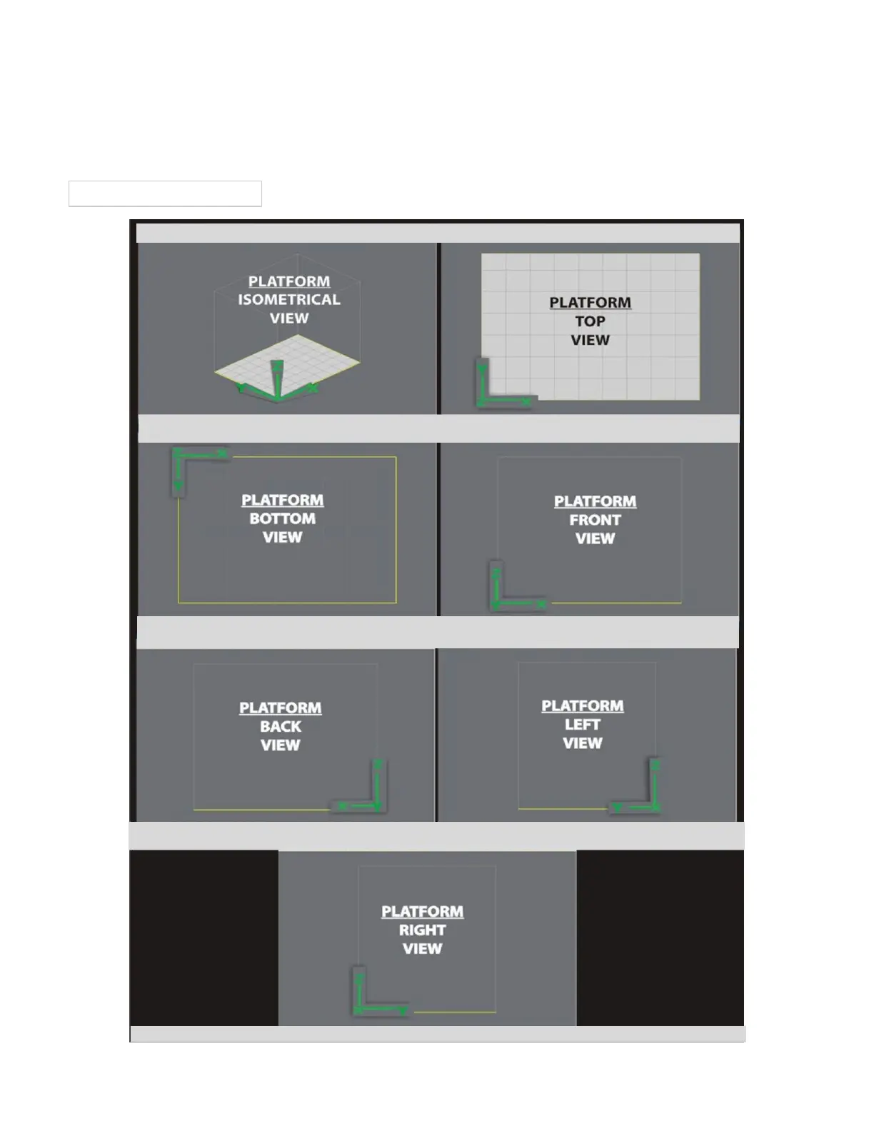 The diagram shows how the coordinate axes are arranged. Note that the Y axis, rather than the X, is the one that faces you, and the Z axis