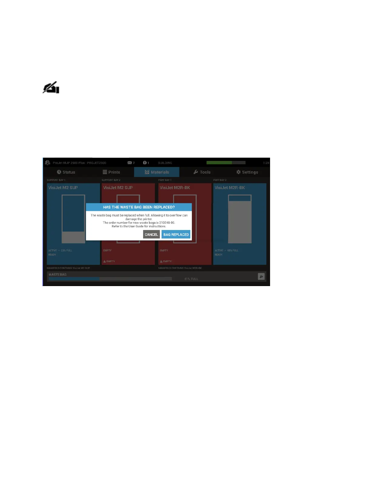 7. Conrm on the printer UI when you have completed replacing the waste bag.